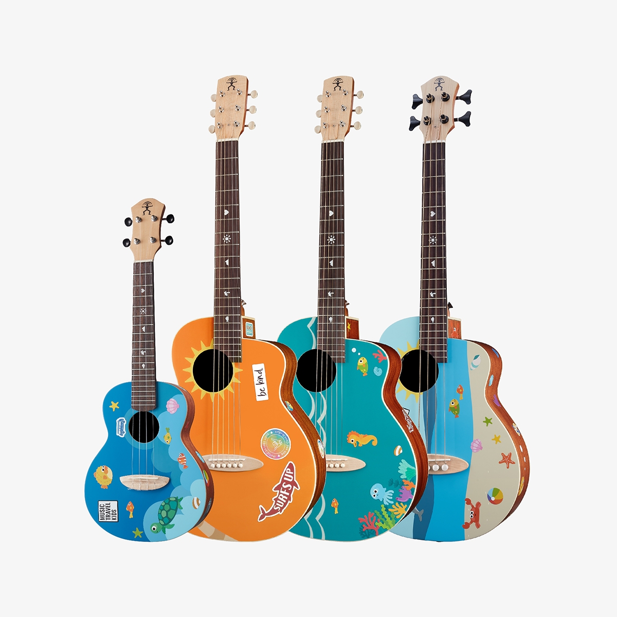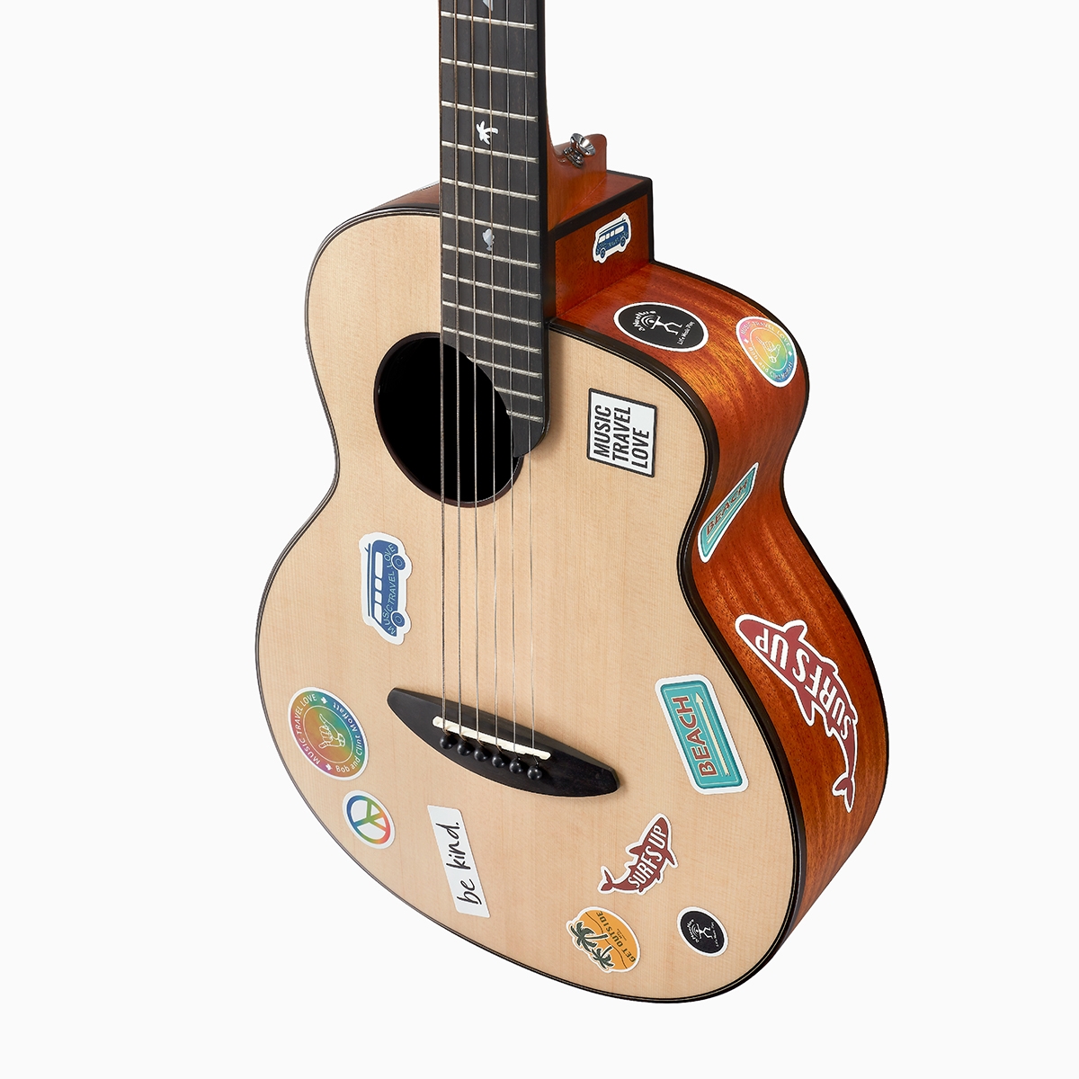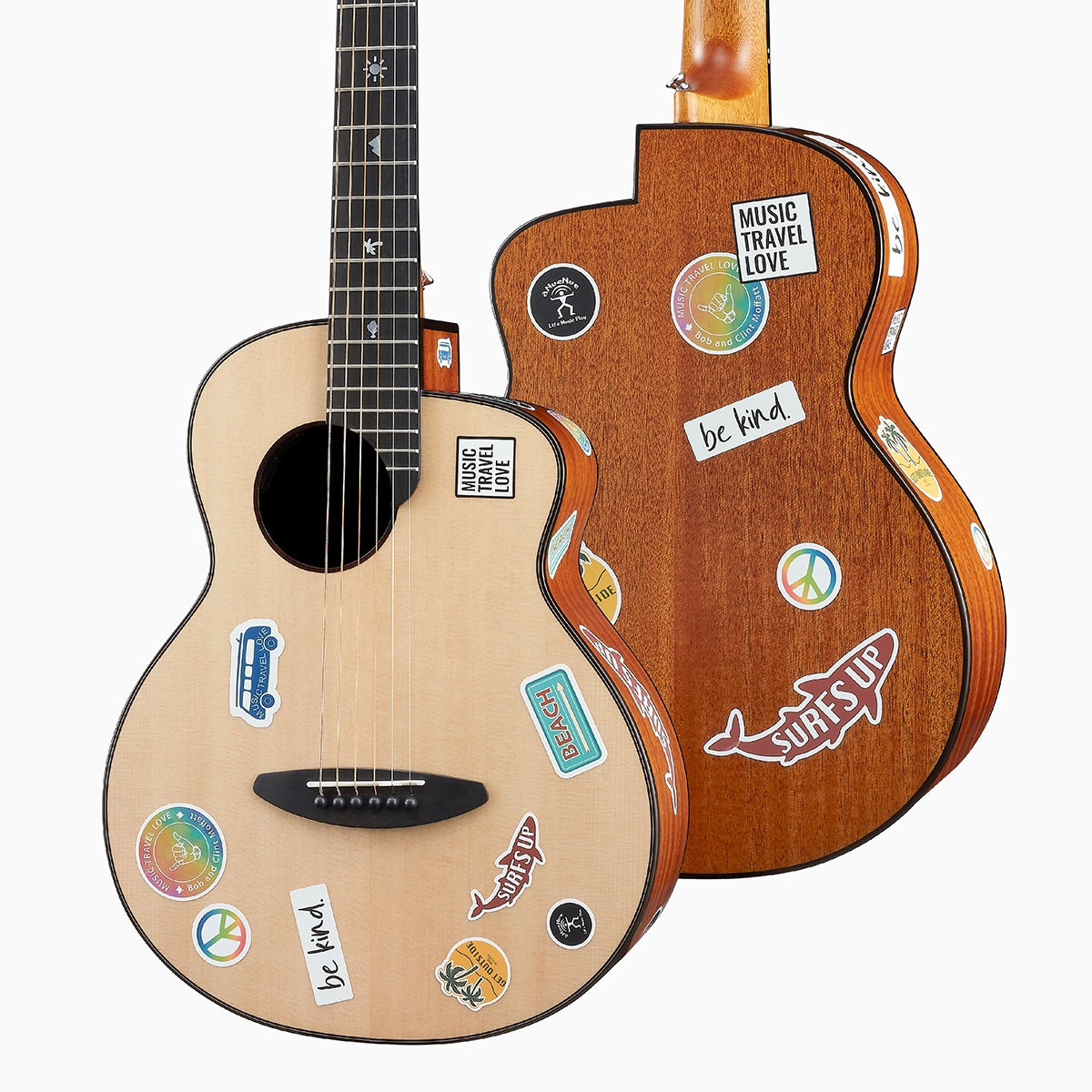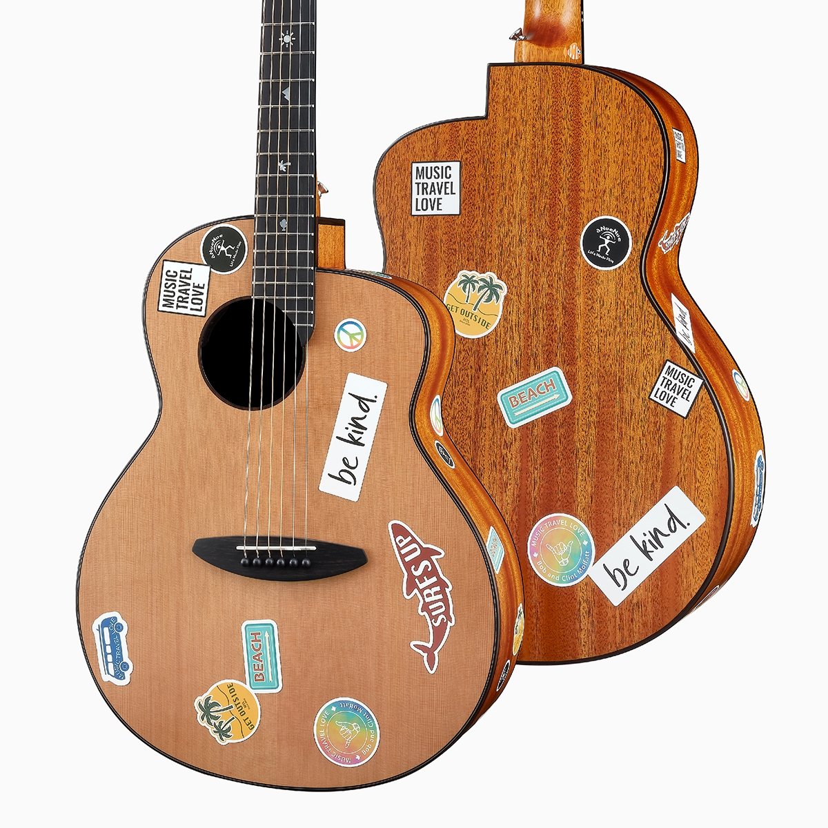 The simple log design preserves more creative space for its player to realize ideas and creativity. Every ingenuity is the mark of the journey of life, making the instrument a part of what defines you. The design sticker pack that comes with the guitar is inspired by Bob, as he likes to put his favorite stickers on the guitar to show his personal philosophy and style, perhaps considered to be his signature design, and it may be a miniscule yet significant difference between the two brothers in terms of aesthetics, so we specially designed stickers exclusively for this series.